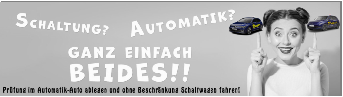 Das wichtigste vorab: Ihr lernt nach wie vor das Schalten und Kuppeln, bis Ihr es könnt. Wir werden im Laufe ihrer Ausbildung mindestens 10 Fahrstunden auf einem Schaltwagen schulen. Am Ende der Schaltausbildung werden wir Euer Können in einem 15 minütigen Test überprüfen. (Der Fahrlehrer prüft hier. Nicht der Prüfer). Wenn Ihr unter Beweis gestellt habt, dass Ihr den sicheren Umgang mit Schaltfahrzeugen beherrscht, bekommt Ihr eine Bescheinigung von uns zur Vorlage bei der Fahrerlaubnisbehörde. Dann bekommt Ihr die Schlüsselzahl 197 in ihren Führerschein eingetragen. Diese berechtigt Euch weltweit zum Führen von Fahrzeugen mit Schaltgetriebe. Den Rest der Ausbildung und die Fahrerlaubnisprüfung legt Ihr dann mit dem Automatikfahrzeug ab. So können wir viel Druck aus der Prüfung herausnehmen, da man sich keine Gedanken um die richtige Gangwahl, Verschalten oder Abwürgen des Motors machen muss. Somit haben Ihr viel mehr Kapazitäten frei für Verkehrsbeobachtung, Spiegelbenutzung usw.